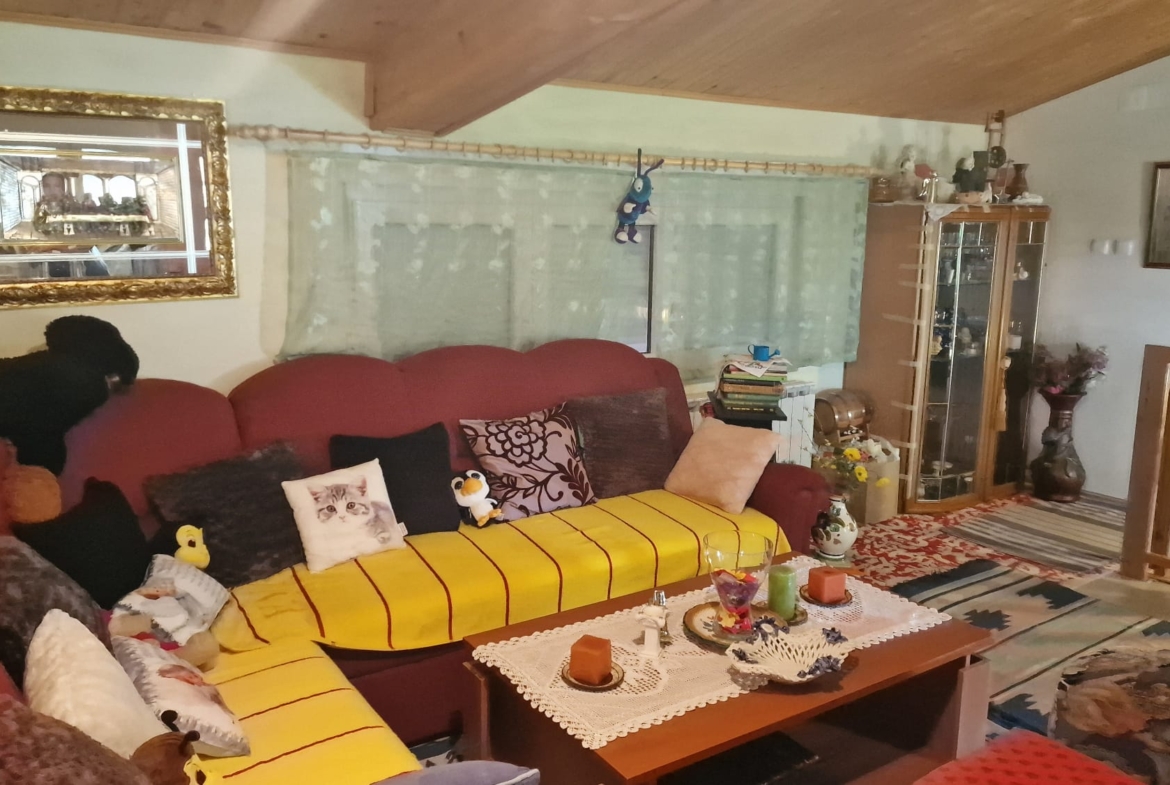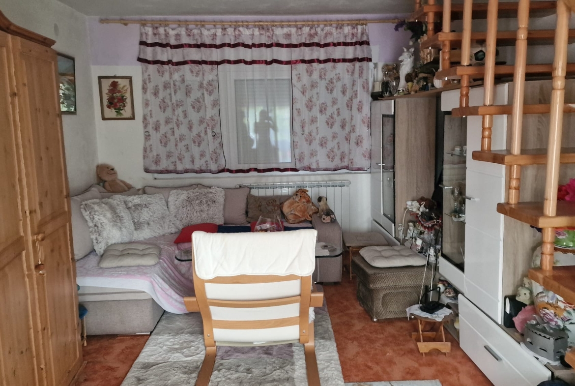 Kuća se sastoji od prizemlja i kata. U prizemlju se nalazi kuhinja, blagovaona, kupaonica i dnevni boravak dok se na katu nalazi dodatni dnevni boravak s izlazom na balkon i spavaća soba. U kući je provedeno centralno grijanje te se na cijeloj kući nalazi PVC stolarija.
